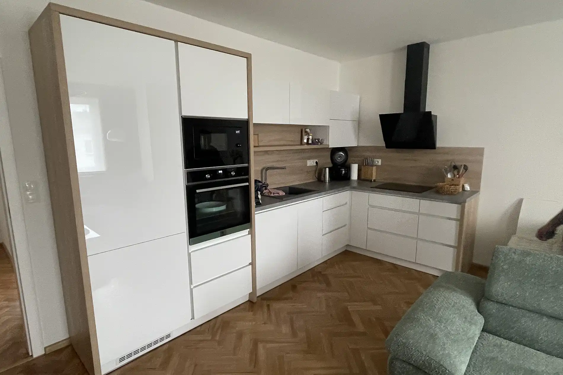 Kuchyně se stává součástí obytného prostoru. Už nejde jen o samostatnou místnost ale o prostor, který plynule navazuje na obytnou část a společně s ním se stává centrem domácnosti. Důležitou roli hrají čisté linie, speciální úchyty nebo bezúchytkové systémy či skryté úložné prostory. Jednotný design navíc vytváří vizuálně harmonický celek. Právě kuchyně na míru spojuje tyto prvky, umožňuje maximálně využít dispozice prostoru a přizpůsobit pracovní zóny potřebám každé domácnosti.